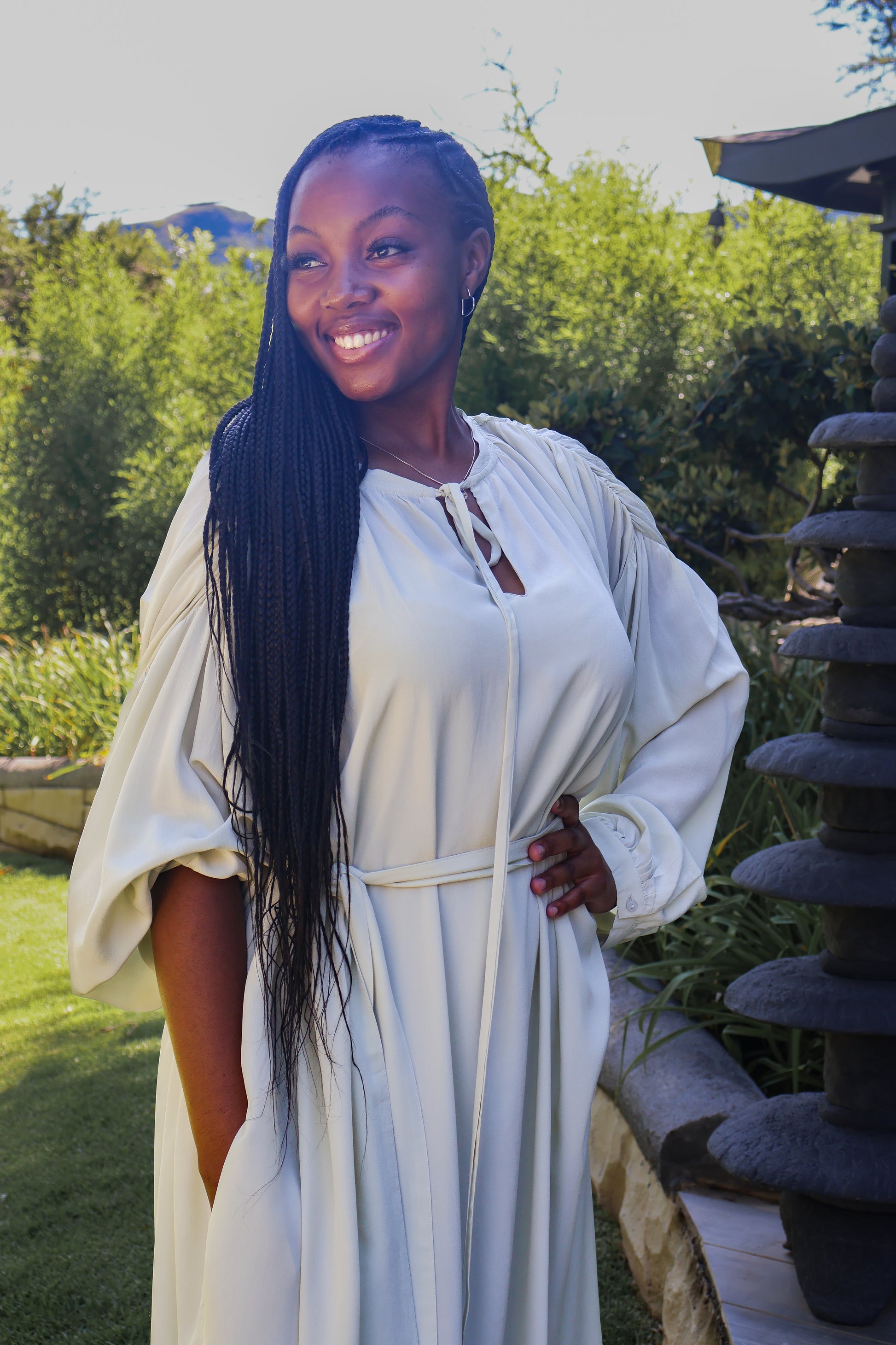 Indulge in effortless luxury with this 100% silk maxi dress, designed for a fluid, graceful drape and unmatched comfort. The free-size silhouette flatters all body types, while hidden side pockets add a touch of functionality without compromising elegance. Perfect for both formal occasions and elevated casual wear, this dress moves beautifully with you, offering a look that is both timeless and sophisticated.